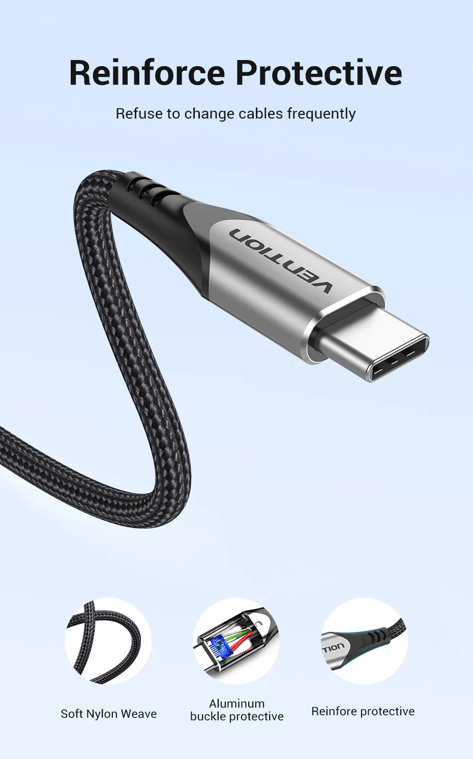O nylon de alta qualidade trançado com carcaça de alumínio superior torna o cabo USB C mais durável e livre de emaranhados, e que oferece excelente proteção contra torção e curvatura, pode carregar o teste do tempo da curvatura 3000 + e o teste do plugue 10,000 + das épocas.
